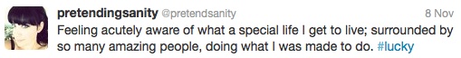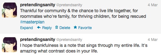2012 was also about community. I got to walk through some very significant things with several of my friends. It was good to be the person giving instead of the person needing. We saw the expansion of our little community, welcoming some bright and shining people who have added so much. I realize over and over again how special this group of people is and how very loved I am. And so safe.