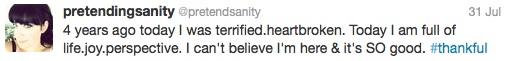 I’m not quite sure how many times I wrote in my journal, THIS is the final step in my transformation. At this point, I’m pretty sure that there isn’t a “final step” and that I’ll always be changing and growing. But 2012 saw lots of steps for sure. 2012 was, for me, about being alive. I got to live more life and experience more things in this year than I had in the previous 5 years. This was the year where I started really dating, quite a bit, having so much fun and a little heartbreak too. I fell in love (a couple of times) and started to see what I actually had been missing all of those years prior. I got to answer some big questions about what I wanted for my future and started to hope that I could have all of the things I couldn’t ever imagine for myself, but my friends promised me were out there. I very solidly reveled in my second chances, knowing that I was rescued from SO very much. Also, I learned to be content with where I was rather than hope for what was to come.