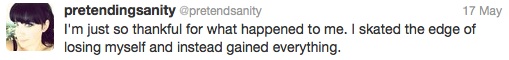 1. “I skated the edge of loosing myself and instead gained everyting” My favorite of your’s for the year; also the very best summary of your life thus far… in my opinion at least!